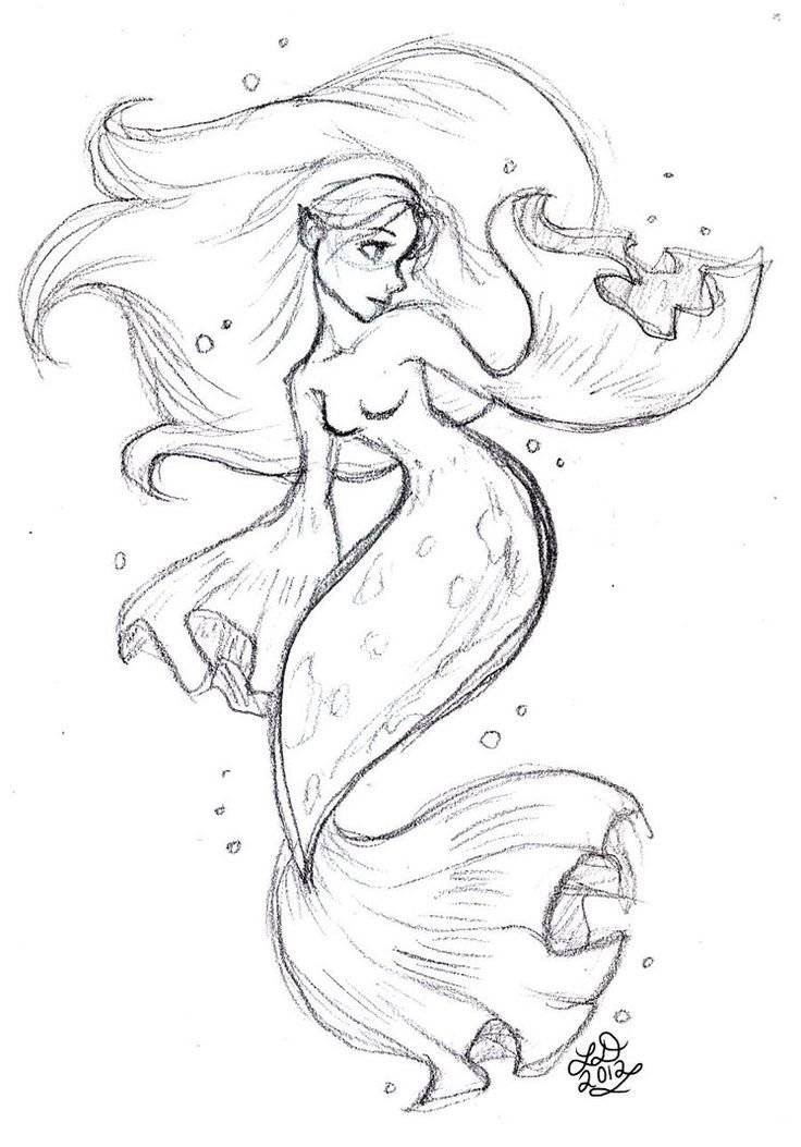Русалка рисунок карандашом для срисовки легкие