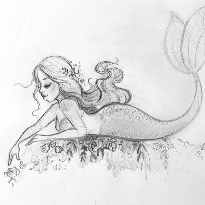 ![Русалочка карандашом]()