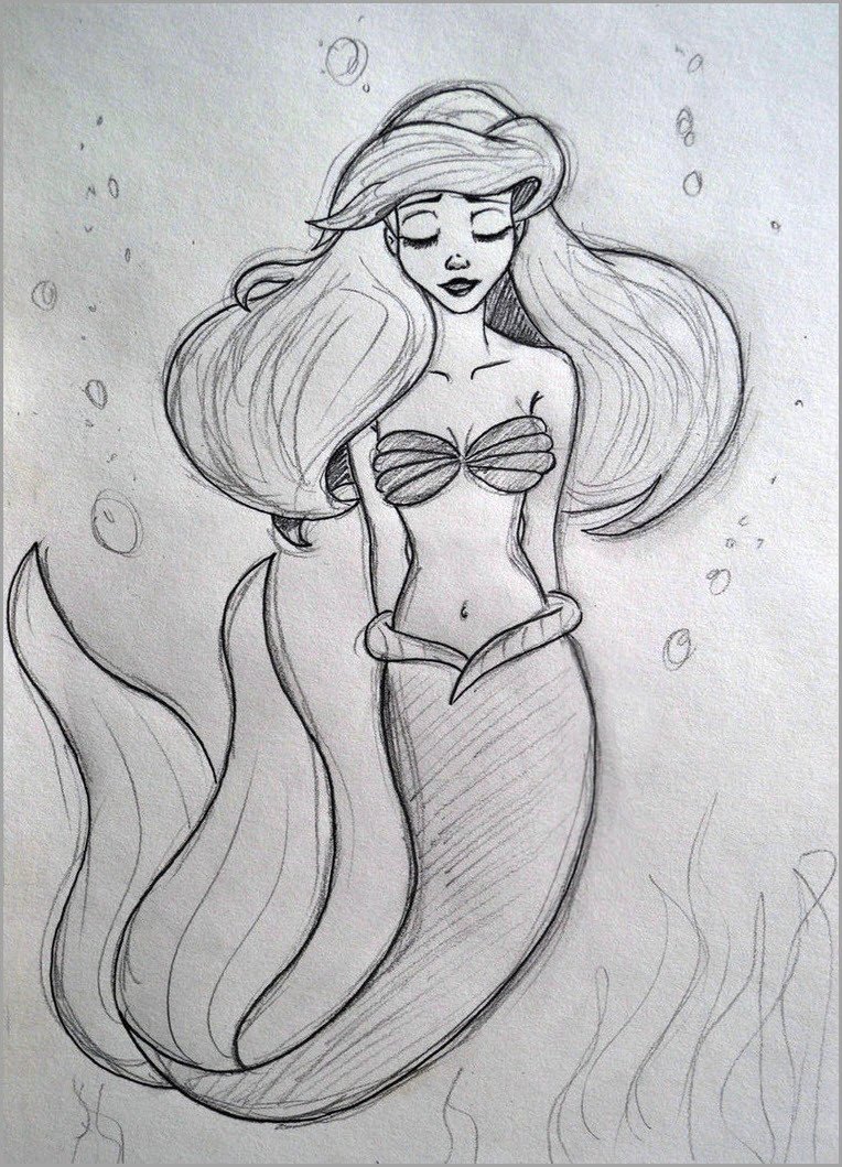 ![Русалочка Ариель рисунок карандашом]()