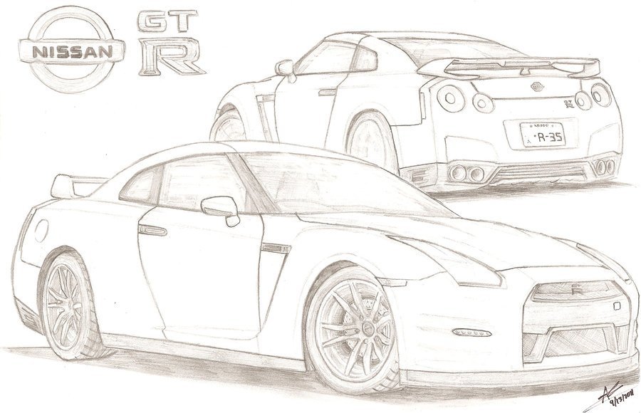 ![Nissan GTR r35 рисунок]()