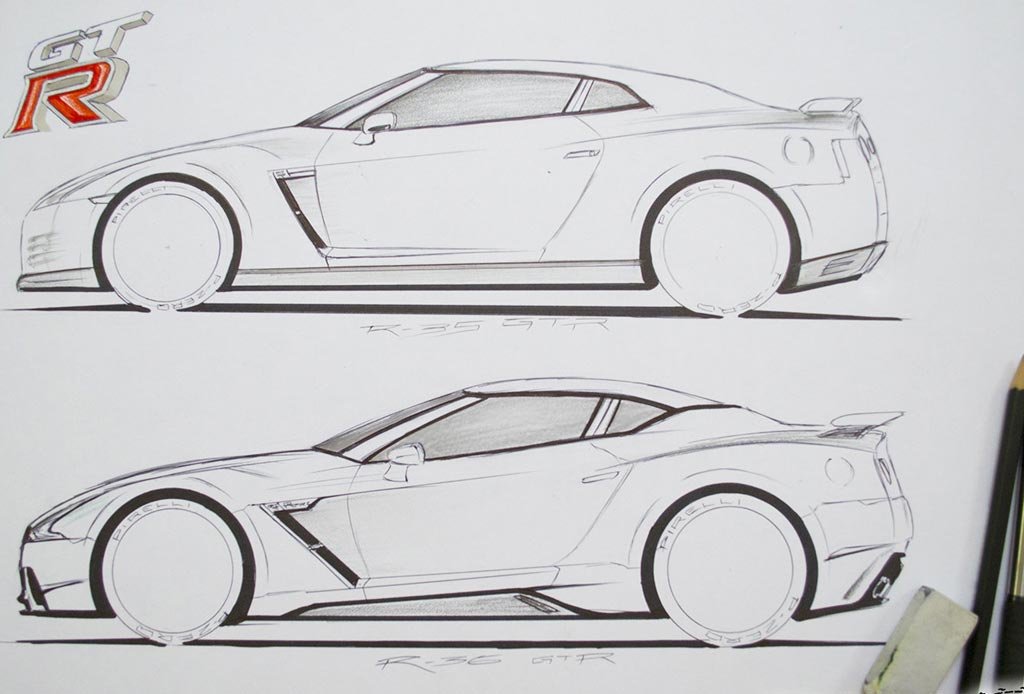 ![Nissan GTR r35 drawing]()