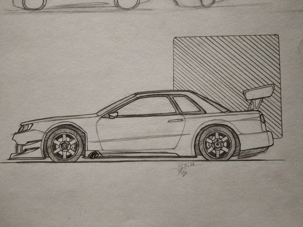 ![Ниссан ГТР карандашом легко]()