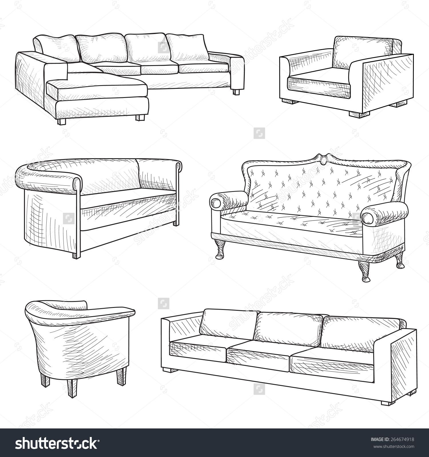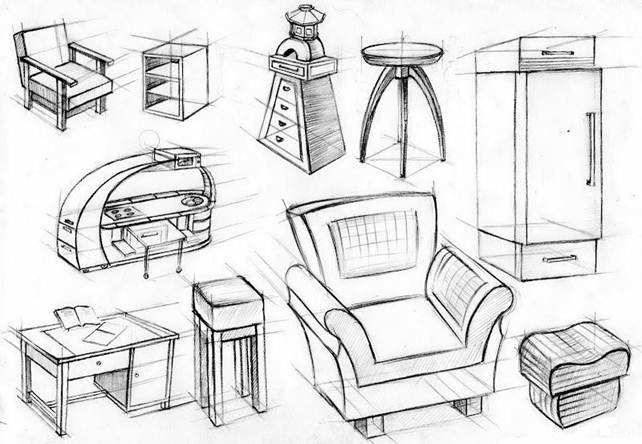 ![Зарисовки предметов мебели]()