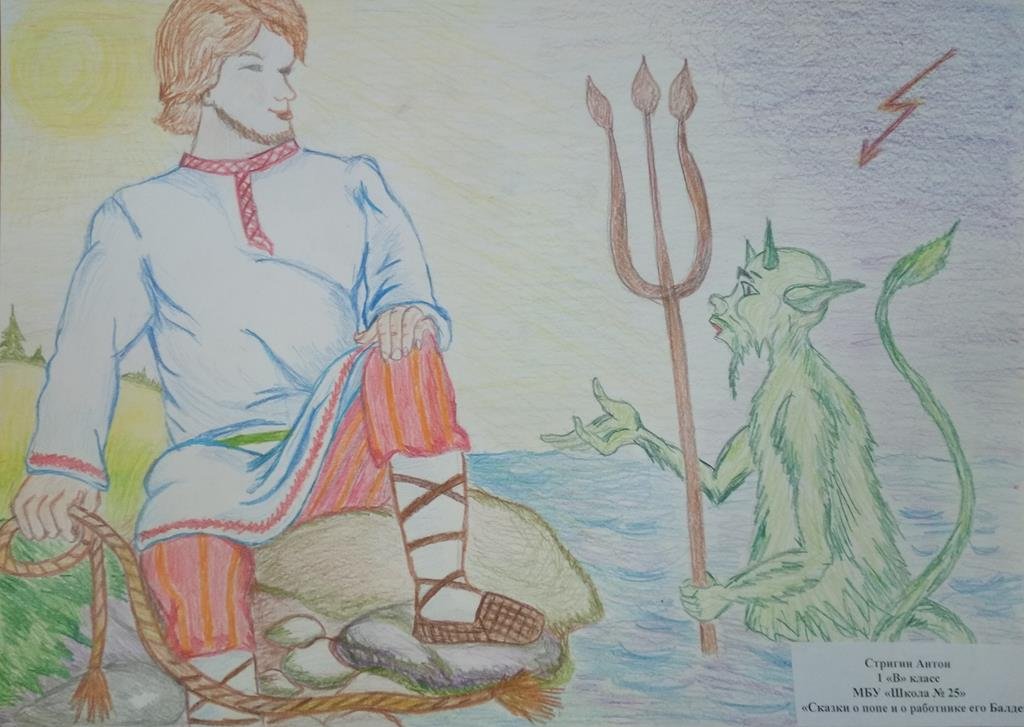 ![Рисунки к сказке Пушкина о попе и работнике его Балде]()