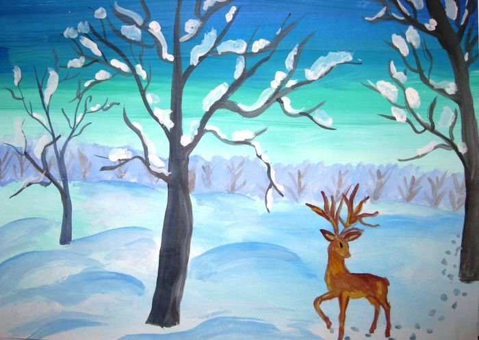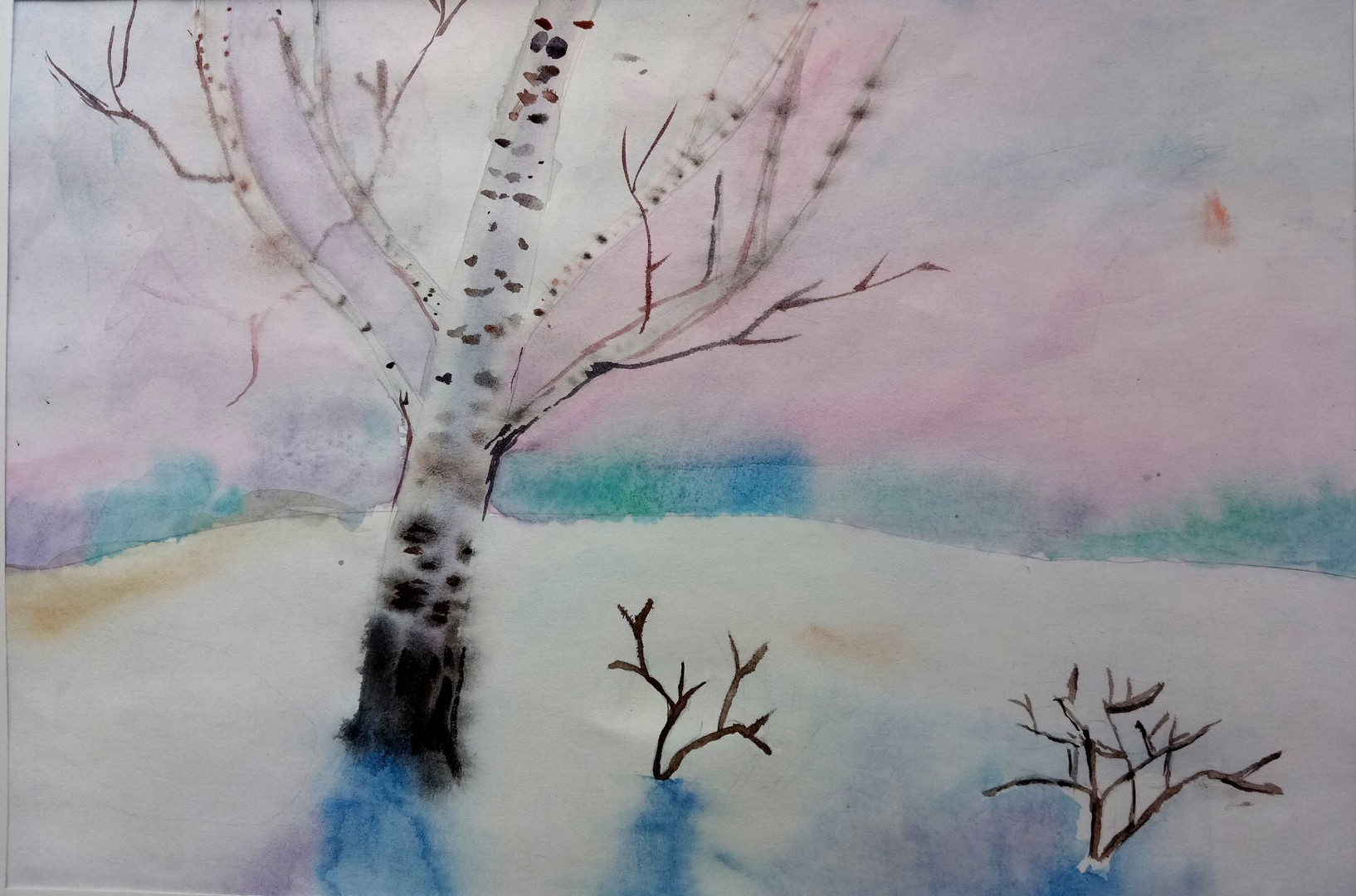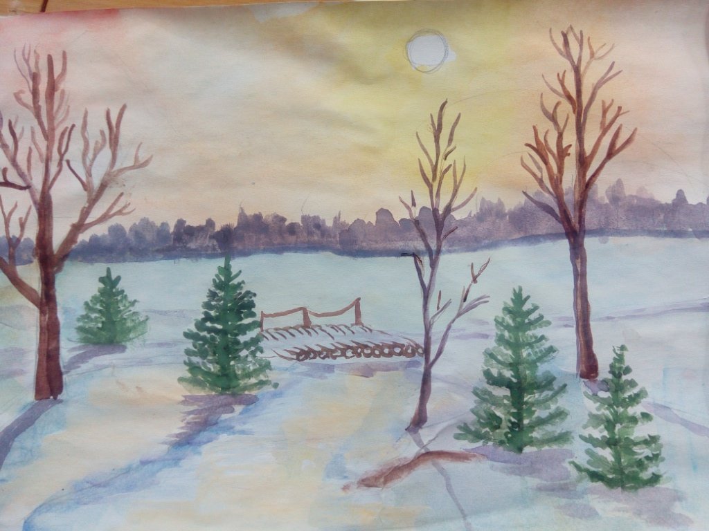 ![Зимний пейзаж акварелью для детей 5 класс]()