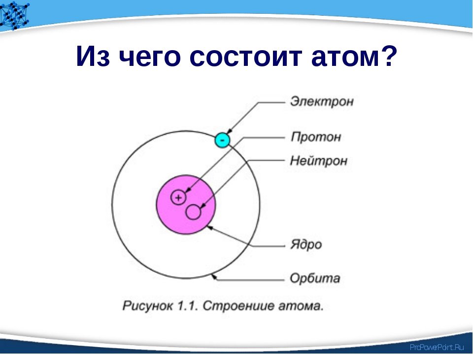 ![Элементарные частицы атома (электрон, Протон, нейтрон).]()