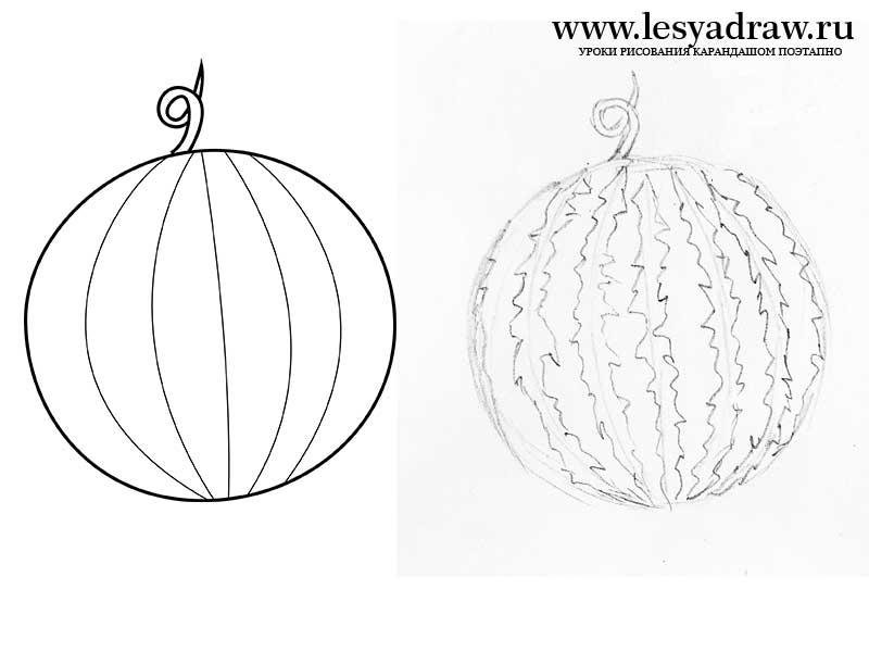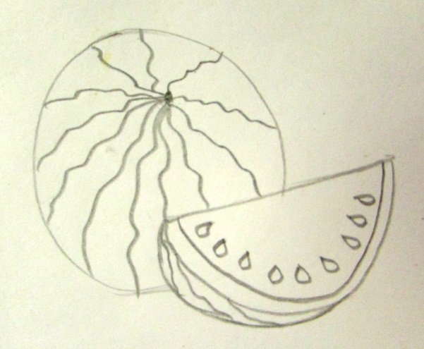 ![Арбуз простым карандашом]()