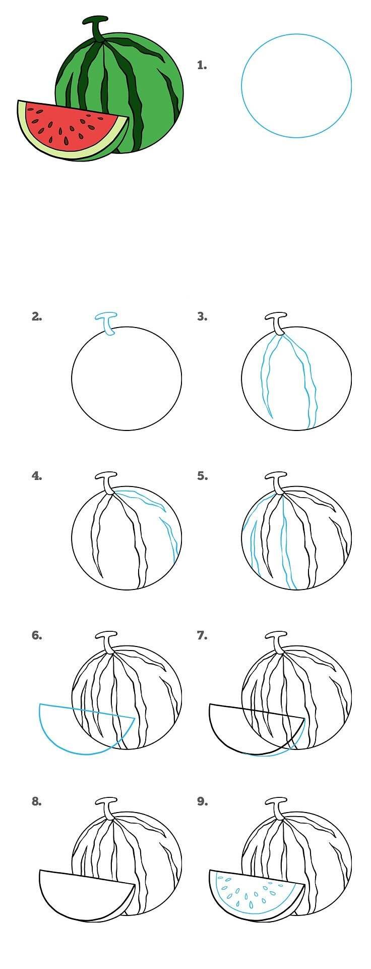 ![Пошаговое рисование арбуза]()