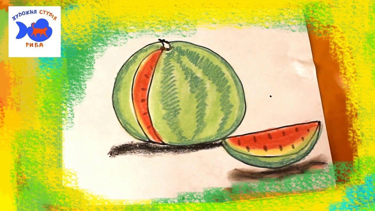![Арбуз рисование с детьми]()