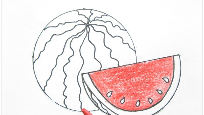 ![Арбуз цветными карандашами]()