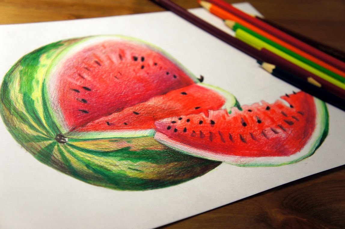Арбуз цветными карандашами