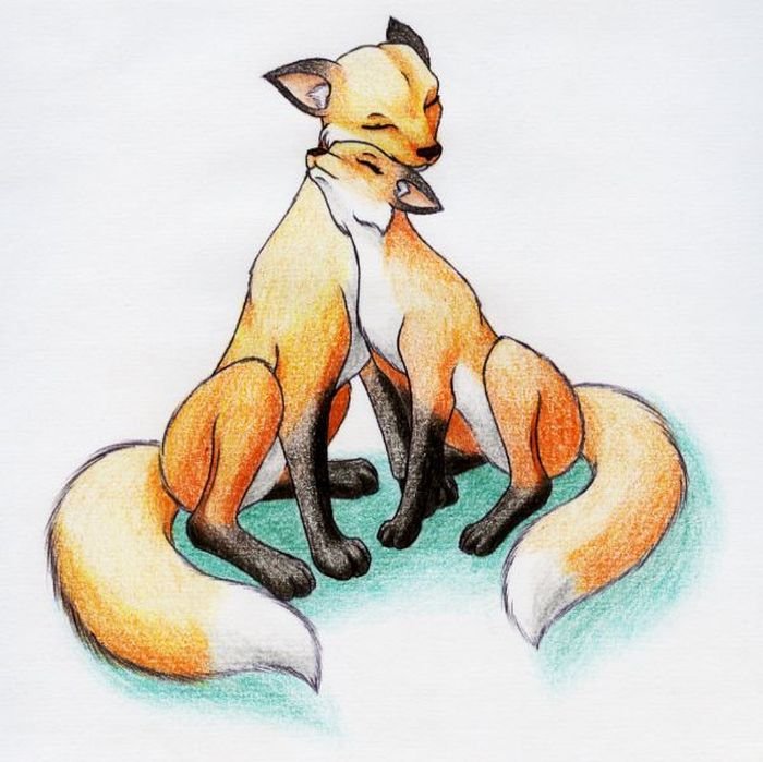 ![Лисы нарисованные]()