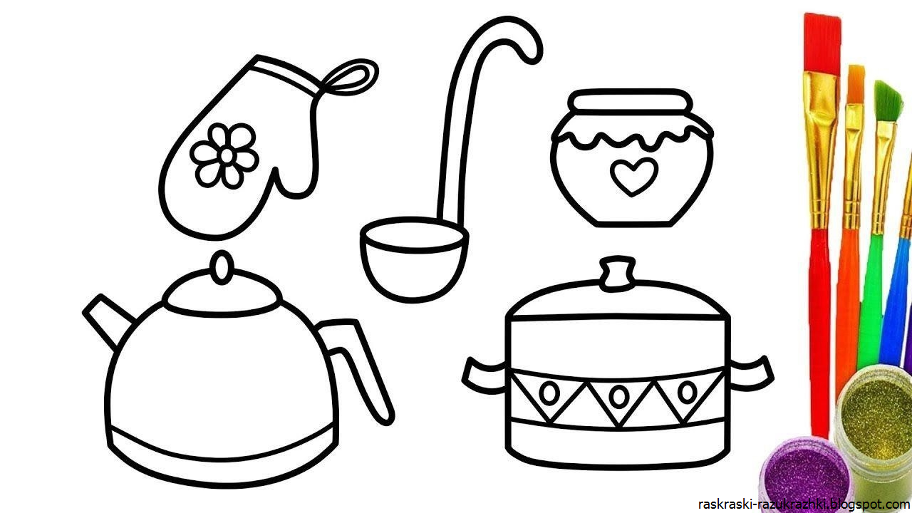 ![Раскраска кухонная посуда]()