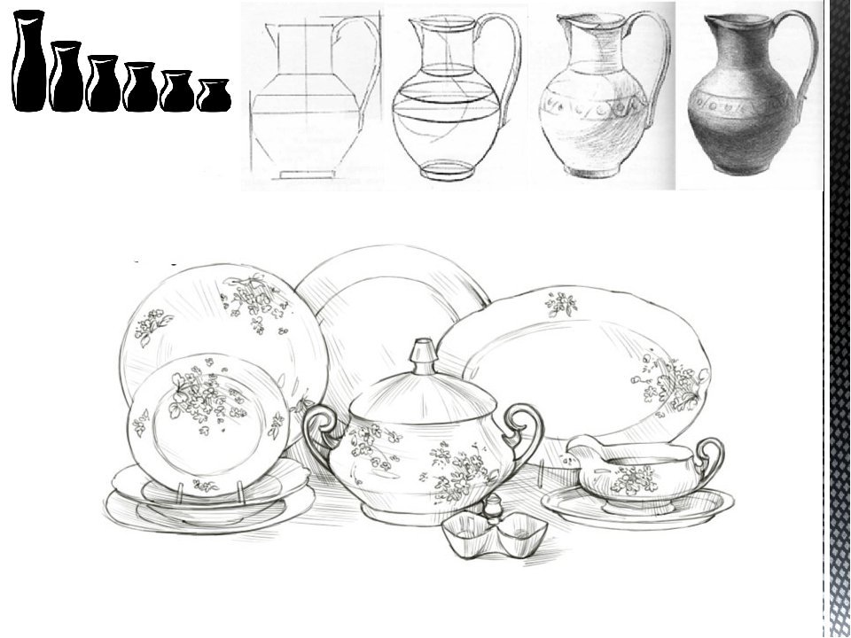 Рисование предметов быта посуда