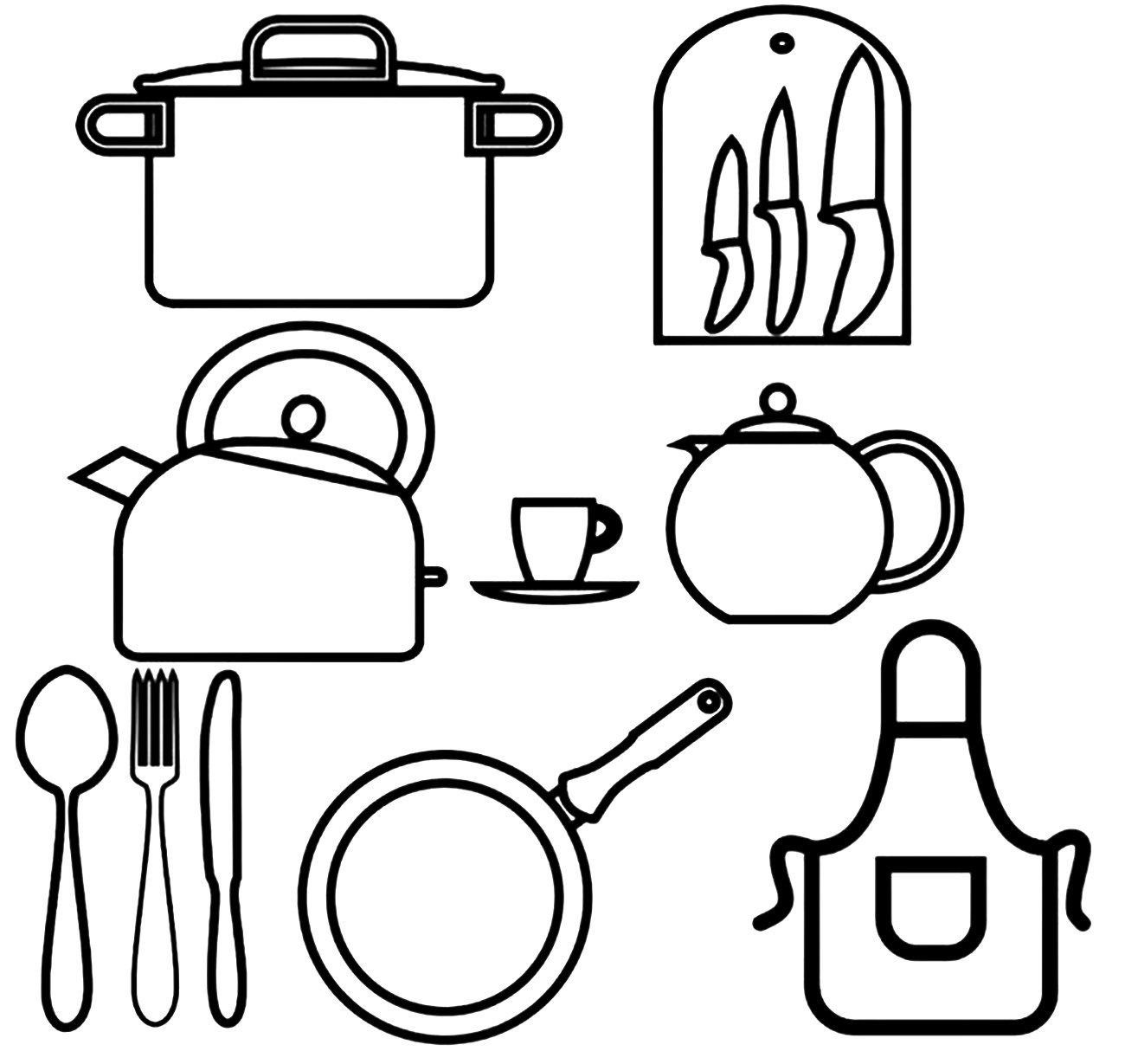 Кухонная утварь раскраска