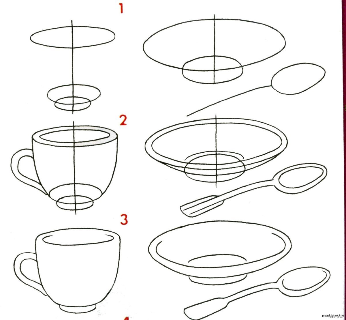 ![Поэтапное рисование посуды]()
