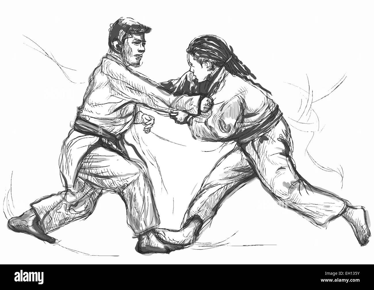 Дзюдо рисунок карандашом