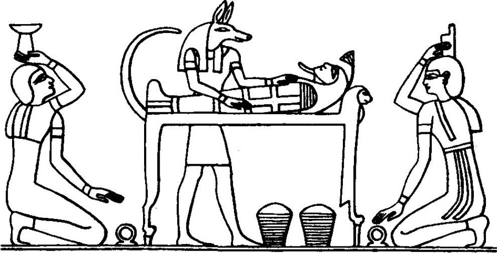 ![Иллюстрация к мифу об Осирисе и Исиде]()