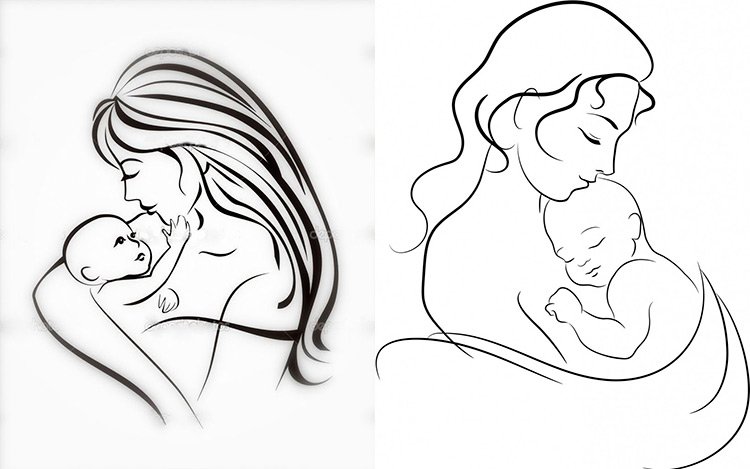 Рисунок матери и ребенка карандашом