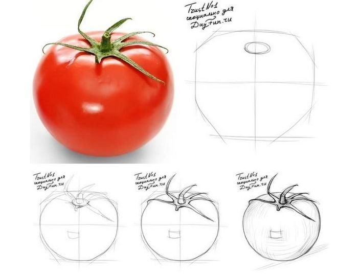 ![Рисование пошагово помидора]()
