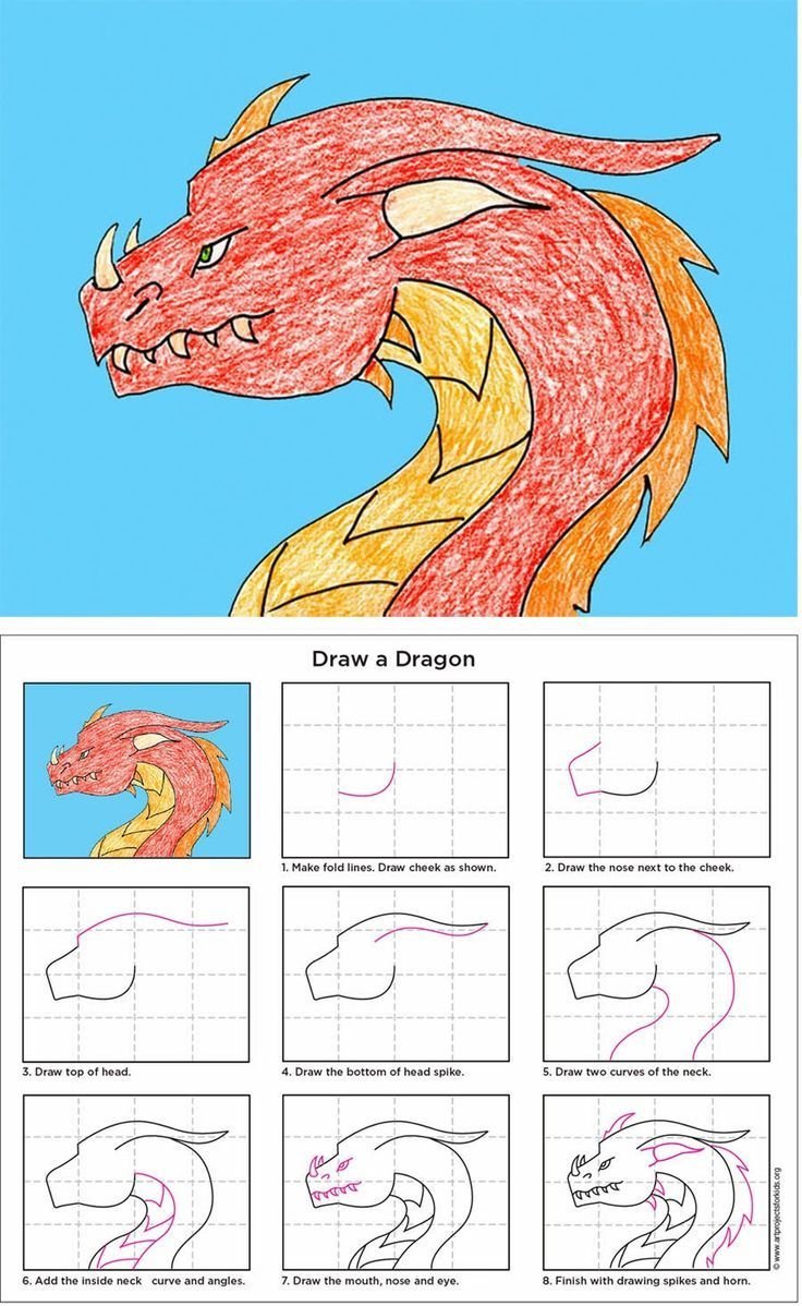 Схема рисования дракона для детей