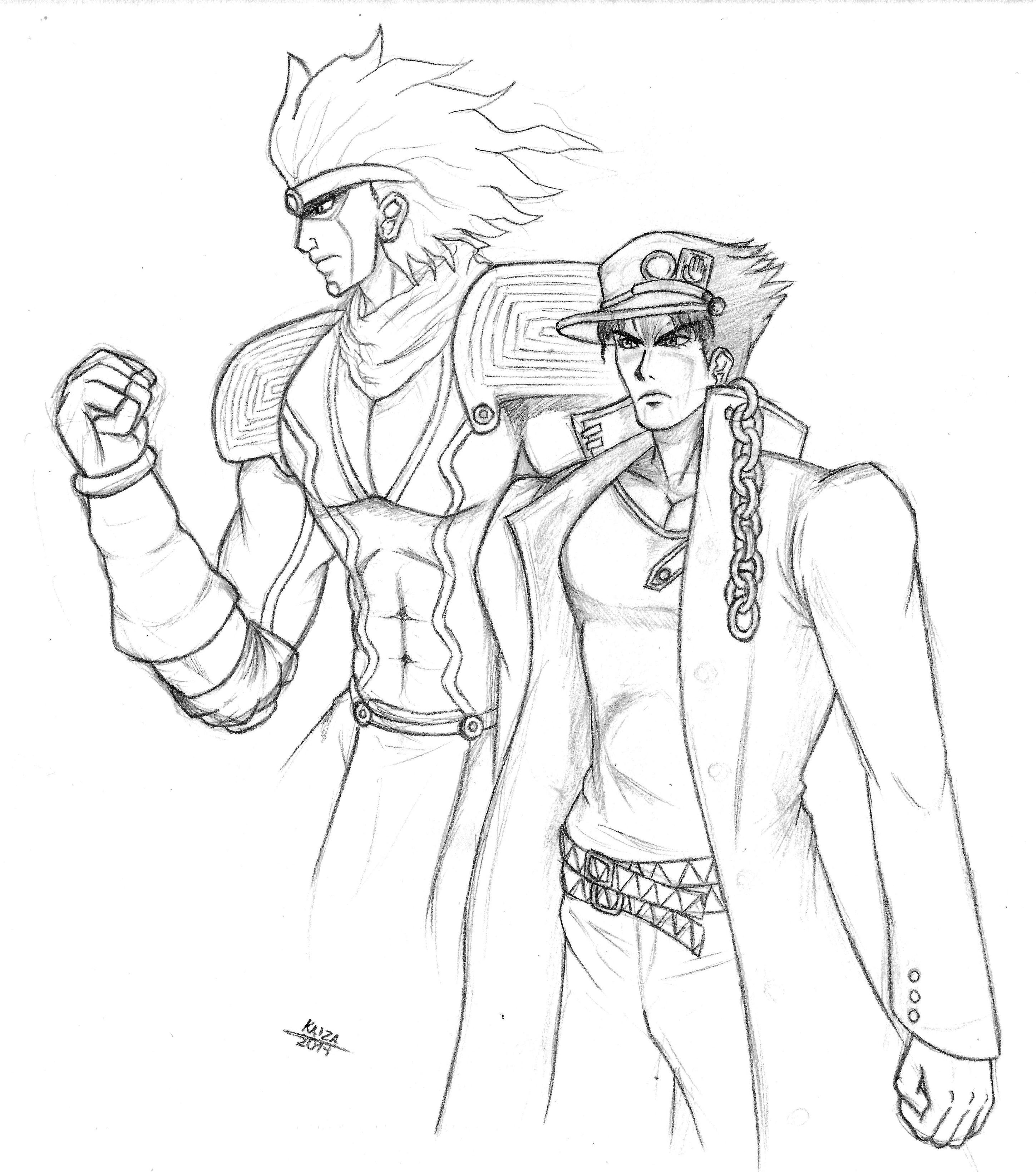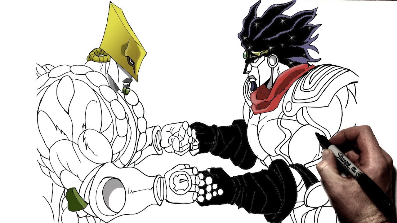 ![Рисунок Джо Джо Джотаро и Стар платинум]()