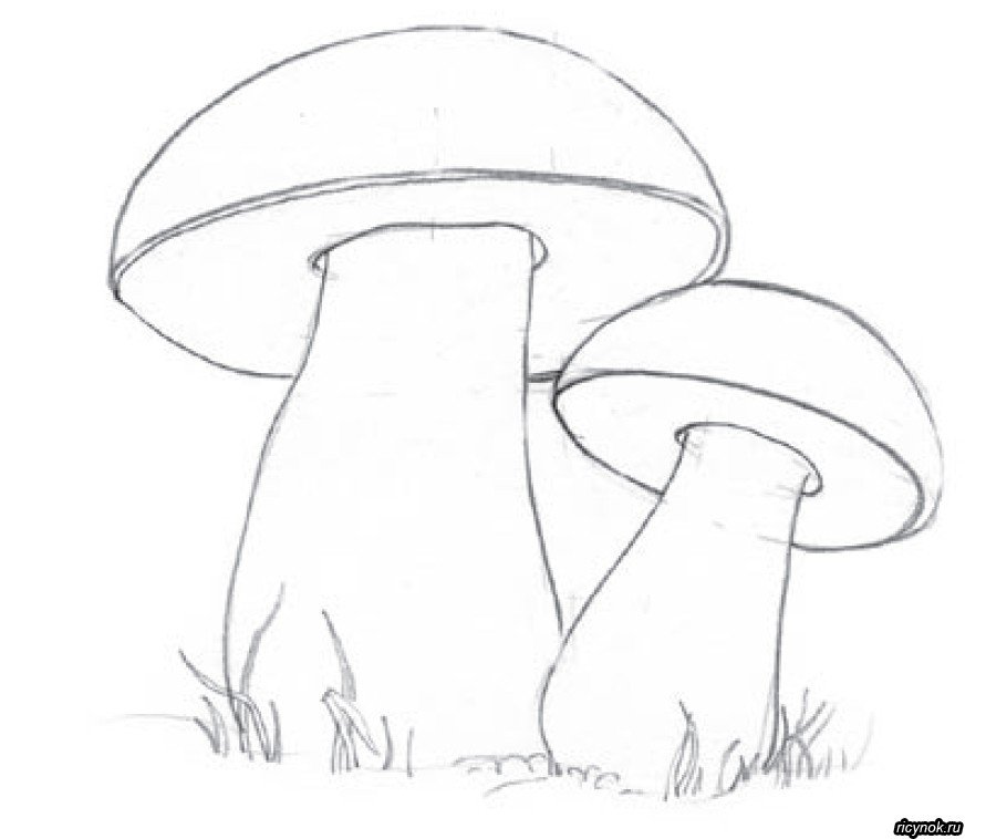 ![Рисунок гриба для детей карандашом подберёзовик]()