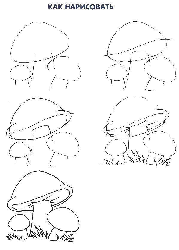 ![Нарисовать мухомор карандашом поэтапно для детей]()