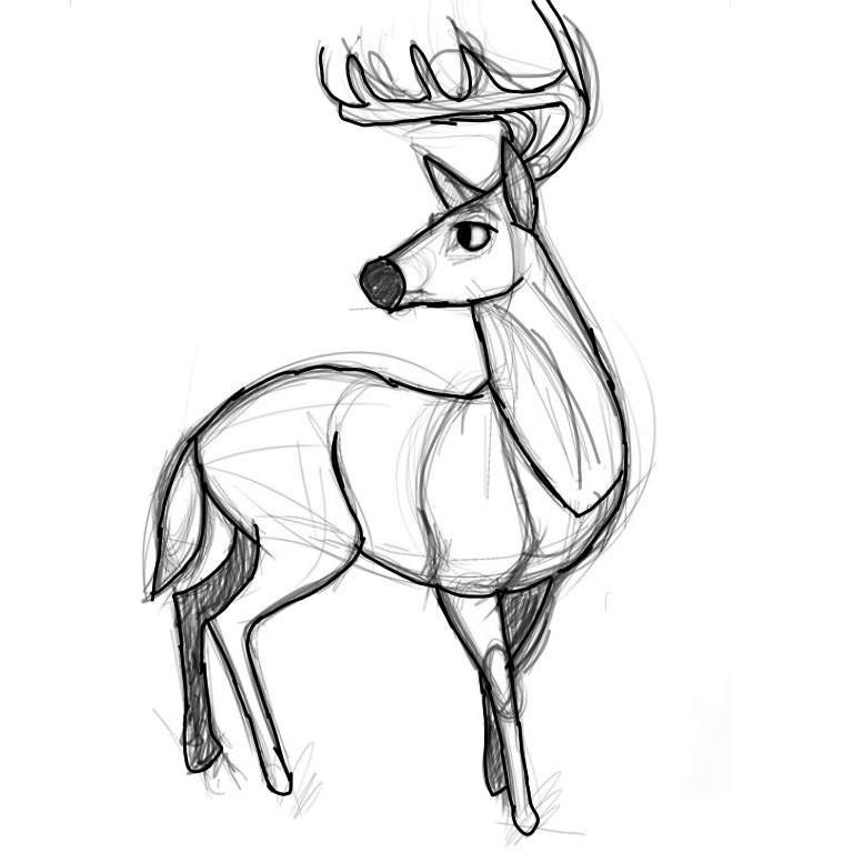 ![Олень для срисовки карандашом легкие]()