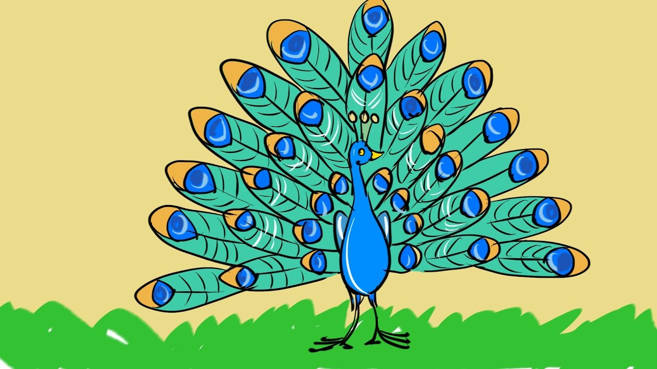 Схема рисования павлина для детей