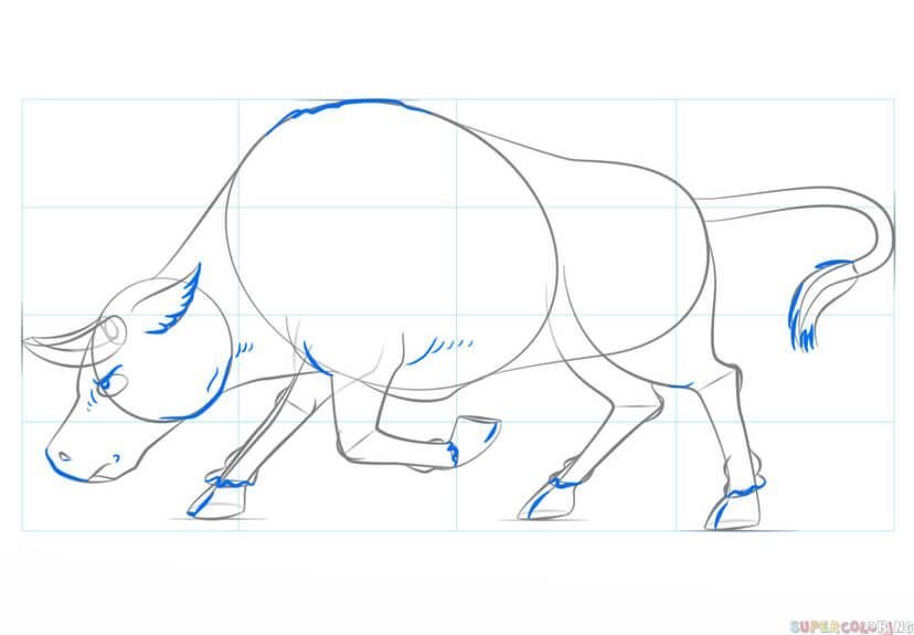 Поэтаповое рисование быка