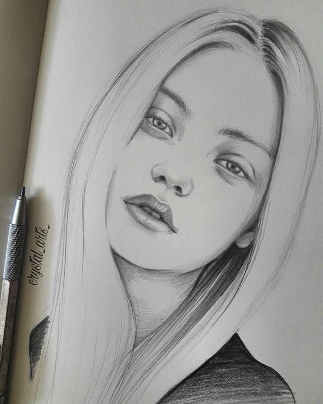 ![Лицо девушки рисунок карандашом]()