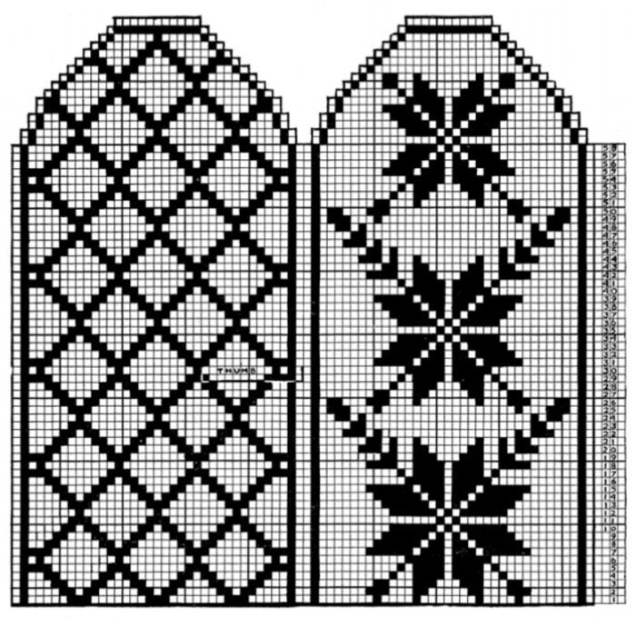 ![Узоры для варежек спицами со схемами простые и красивые]()