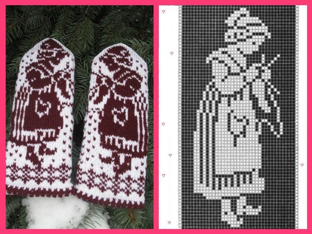 ![Жаккардовые узоры для варежек спицами схемы и описание]()