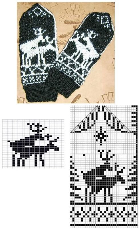 ![Вязаные рукавицы с орнаментом спицами схемы]()
