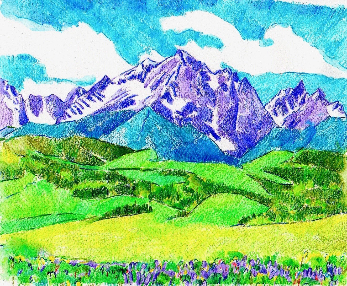 ![Саяны горы цветными карандашами]()