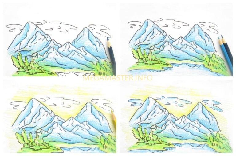Горы поэтапное рисование
