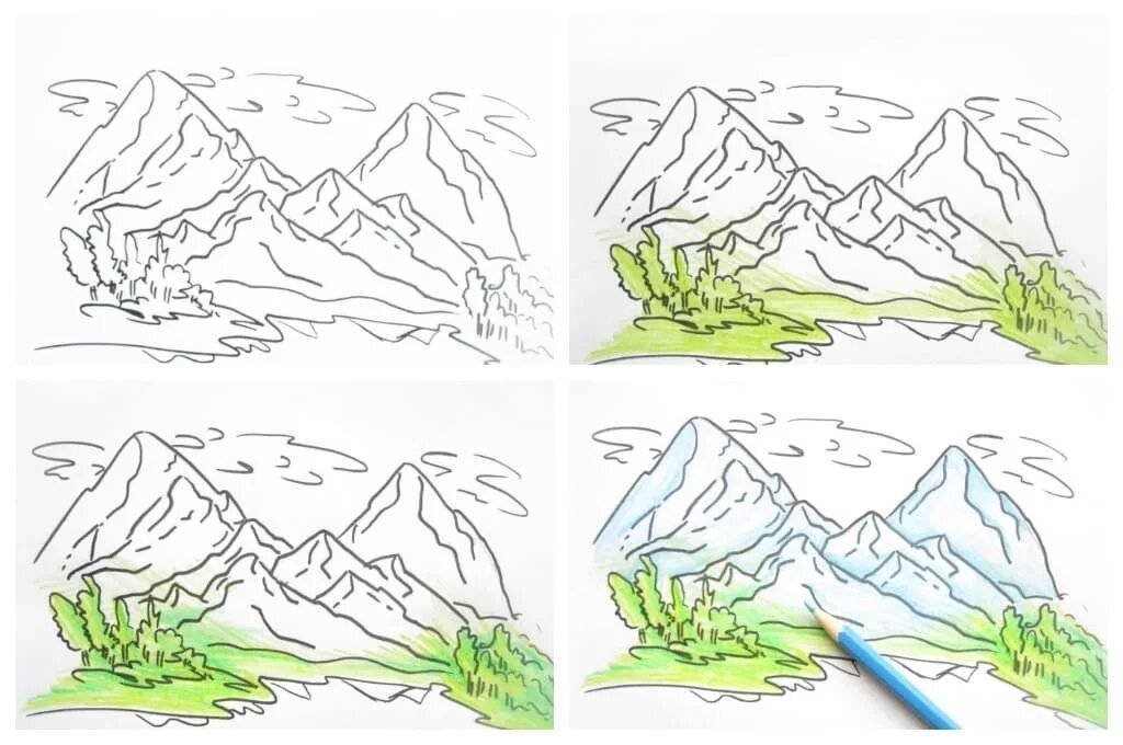Горы карандашом для детей