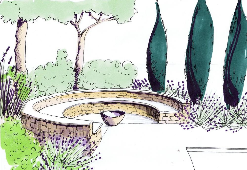 ![Ландшафтный дизайн зарисовки]()