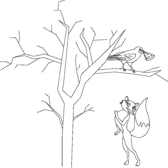 Иллюстрации к басням Крылова раскраски ворона и лисица