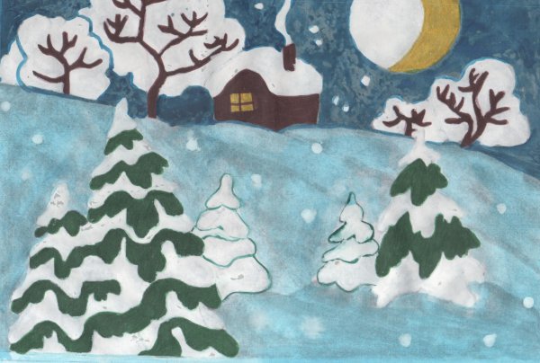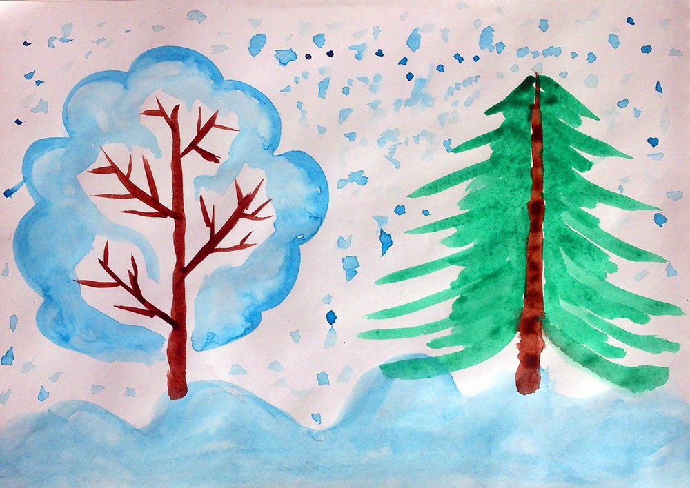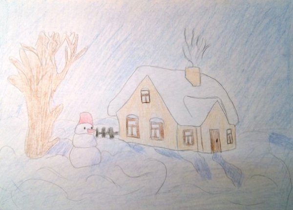 ![Детский рисунок зима]()