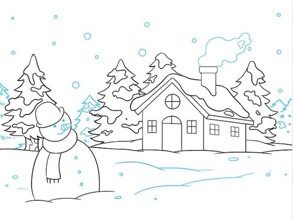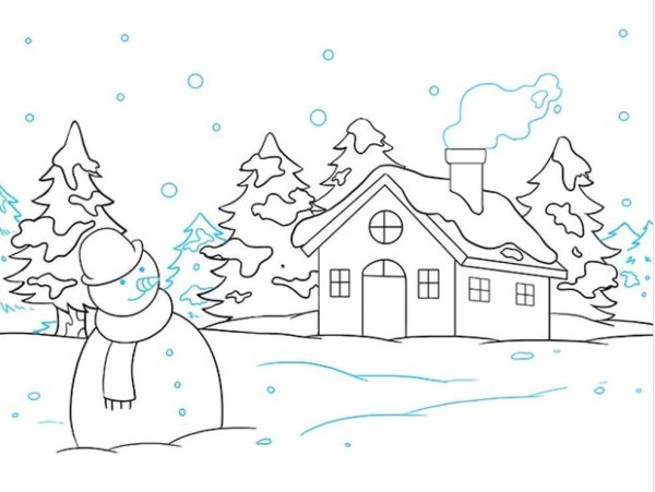 ![Зимний пейзаж легкий для срисовки]()