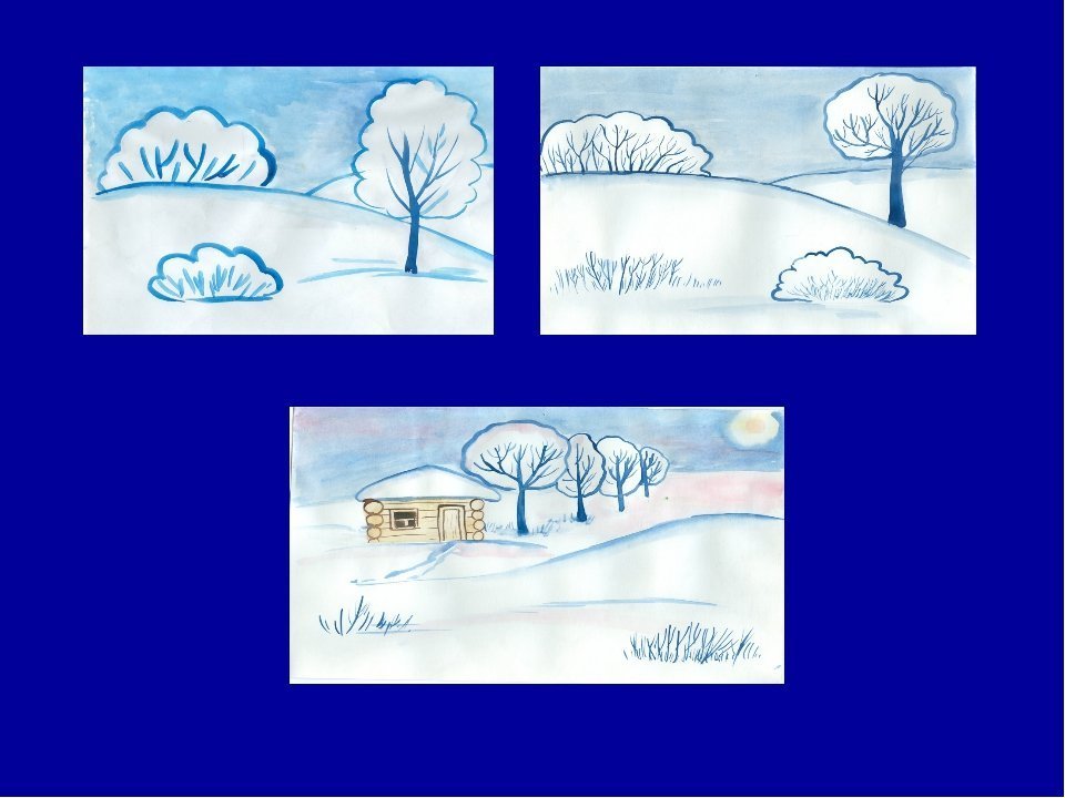 Зимний пейзаж рисование для детей