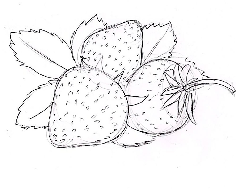 Клубника рисунок карандашом