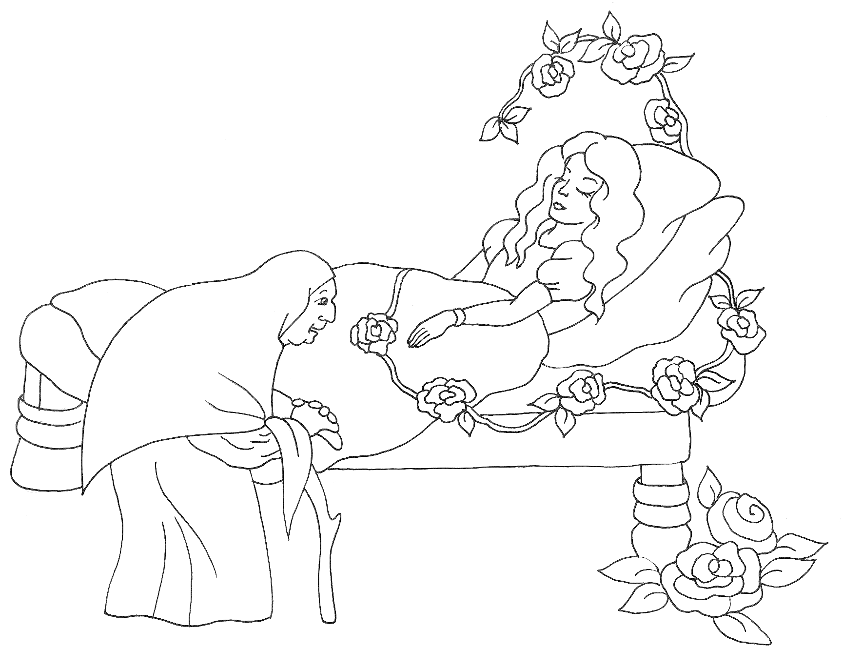 ![Раскраска к сказке спящая Царевна Жуковский]()