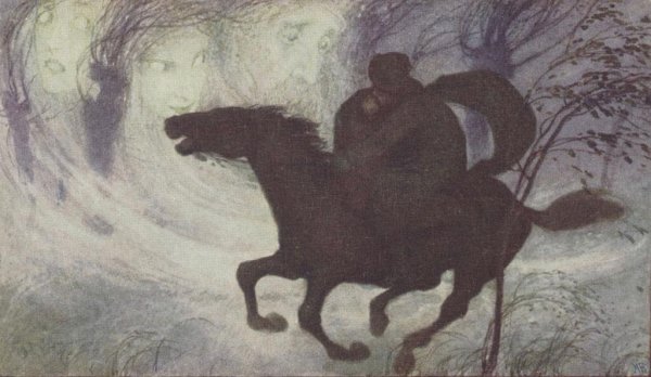 ![Иллюстрация к балладе Шуберта Лесной царь]()
