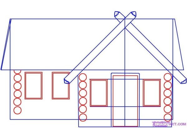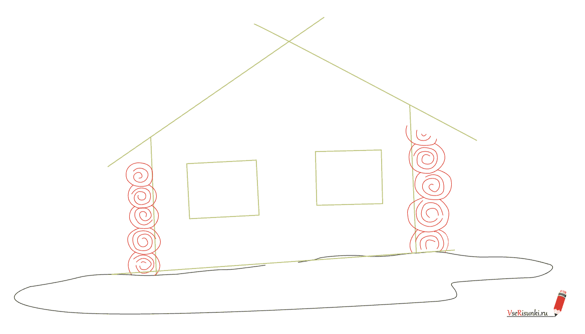 ![Рисование избы]()
