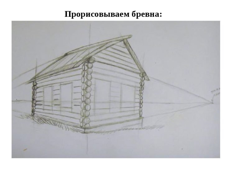 ![Рисование русской избы]()