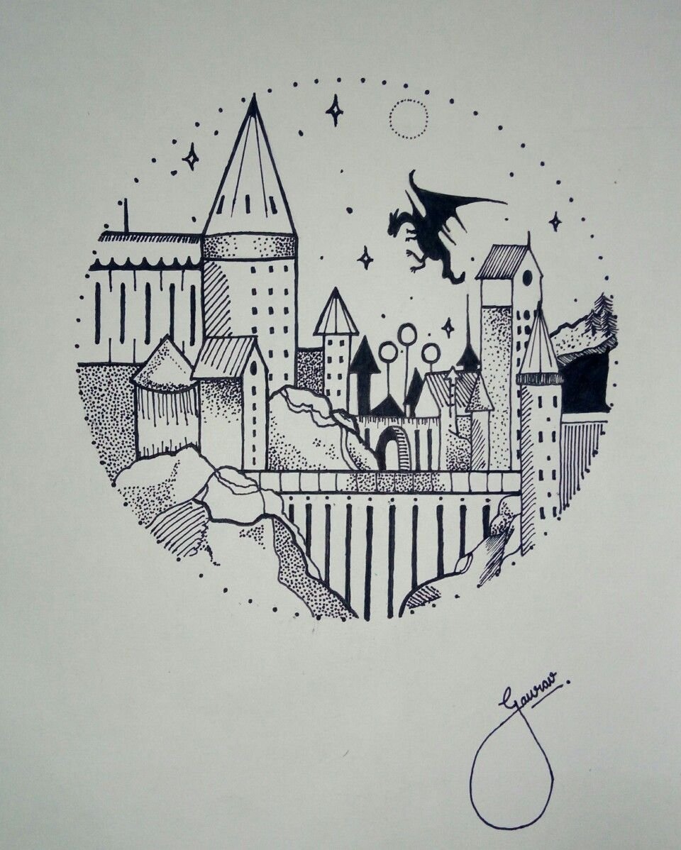 ![Гарри Поттер рисунки легкие Хогвартс]()