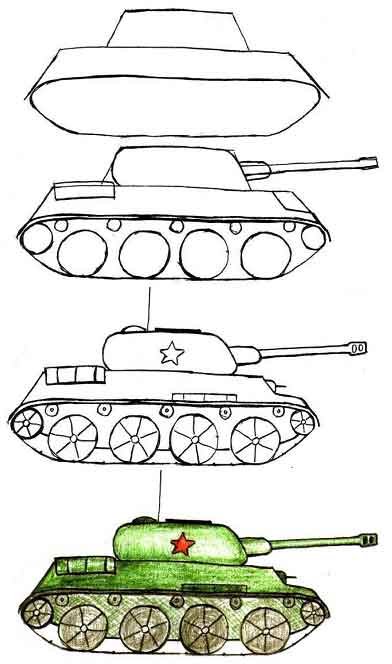 ![Танк спереди рисунок поэтапно]()